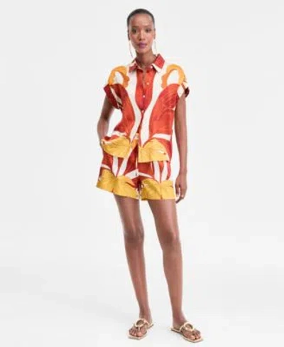 INC INTERNATIONAL CONCEPTS Womens Printed Button Down Camp Shirt Matching Drawstring Shorts Exclusively At Macys In Multi