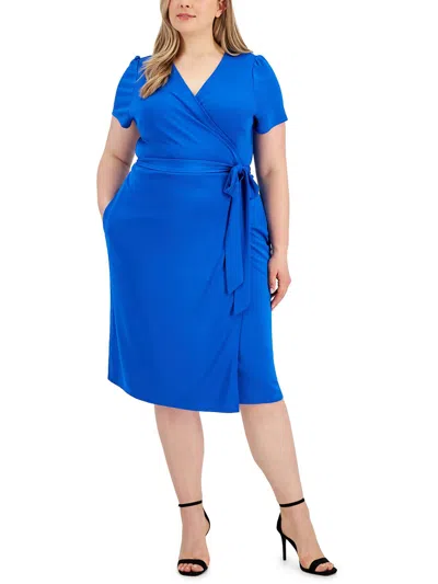 INC Plus Womens Solid Polyester Wrap Dress In Multi