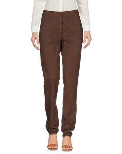 plain weave, no appliqués, mid rise, tapered leg, slim-leg pants, multipockets, solid color, button closing, hook-and-eye closure, chinos , Color: Dark brown , Size: 30