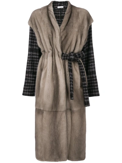 Grey and black silk and alpaca blend and mink fur Benoit belted coat from Inès & Maréchal.