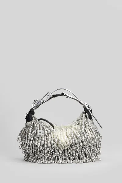 Object HM00 micro Shoulder bag in silver polyester, adjustable handle, zip closure, beads decoration, metal insert, black hardware, 100% polyester, Made in Italy