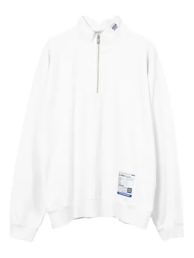 white half zip fastening dropped shoulders cotton construction label appliqué