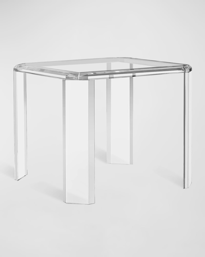 An architectural silhouette transforms the Alden Table into a fabulous statement-making accent. Endlessly versatile as a small dining table, game table, or accent table to activate any space. Handcrafted of acrylic and glass Overall, approx. 34"Sq. x 29"T Weight limit: 500 lbs Finished back Item Weight, 97.0 lbs Imported Boxed weight, approximately 108.0 lbs