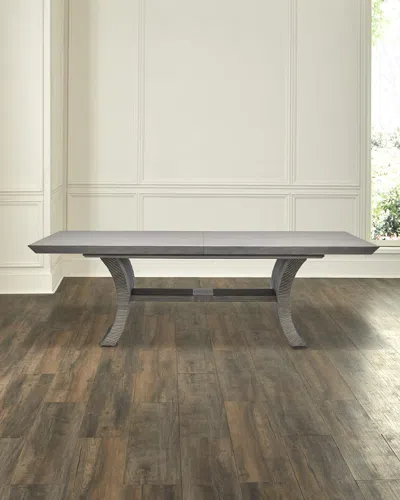 Juxtaposing a rectangular top with a curvy trestle, the washed taupe Deerfield Extension Table delivers organic, unbeatable style. Handcrafted of engineered hardwood Includes one 24" removable leaf Overall, approx. 96-120"W x 42"D x 32"T Assembly required; includes hardware Ships in two boxes Finished back Wipe clean Weight, 290.0 lbs Imported Boxed weight, approximately 300.0 lbs ShippingDirect from Vendor, usually ships within 28 business days.