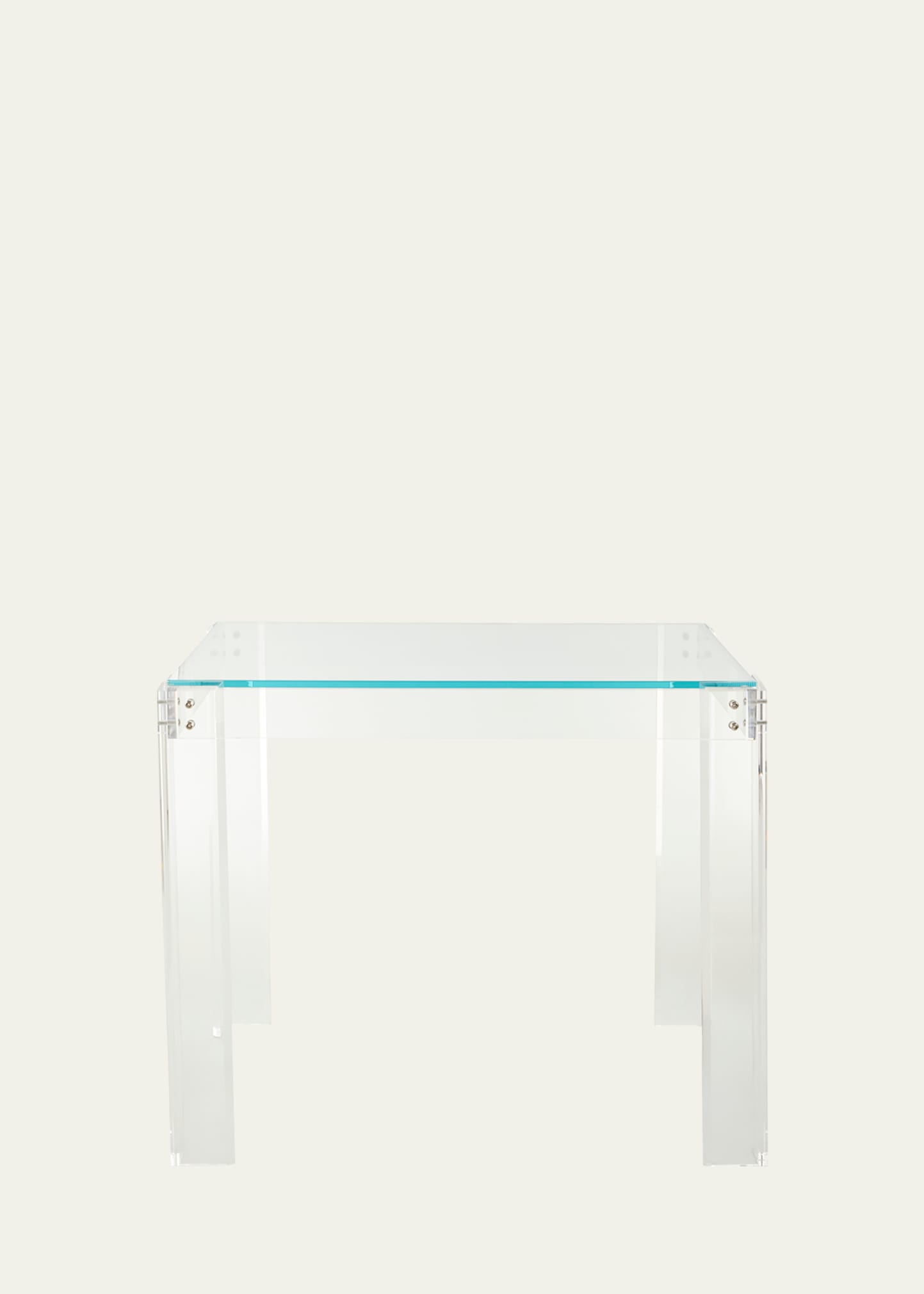 A completely classic game table becomes totally of-the-moment when it's realized in clear acrylic and glass. Handcrafted game table. Glass/acrylic/stainless steel. 37"Sq. x 30"T. For indoor use only. Imported. Boxed weight, approximately 133 lbs.