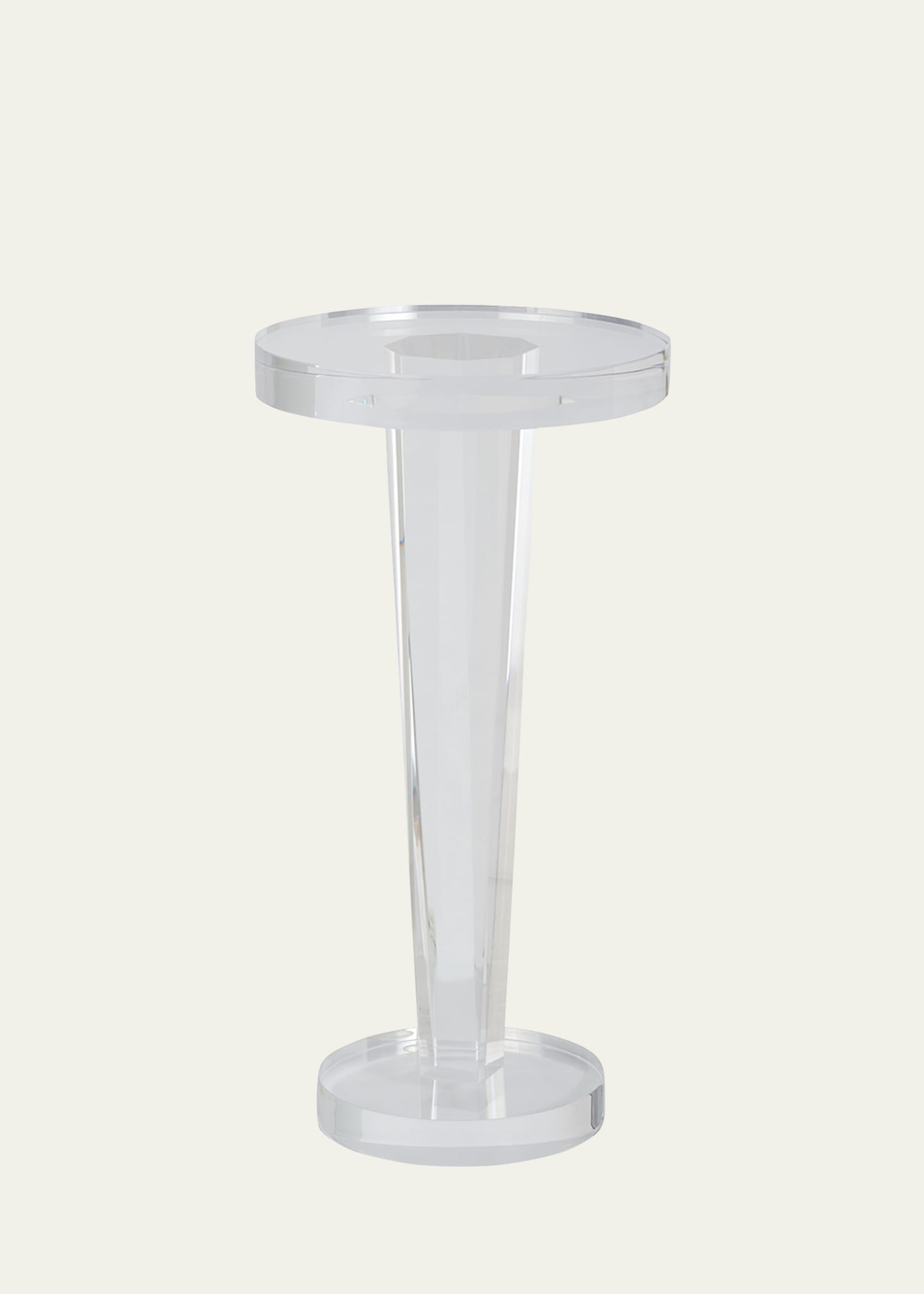 Handcrafted drink table is made of slick, gleaming acrylic perfect as a glamourous accent piece. 11"Dia. x 22"T. For indoor use only. Imported. Boxed weight, approximately 13 lbs.