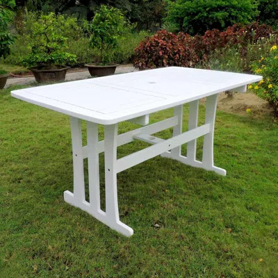 This stylish outdoor table is the perfect addition to your patio. Made from durable Acacia wood it is weather-resistant to ensure longevity. Has a hole in center of table for an umbrella.