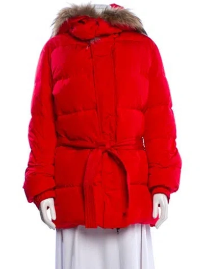 Intuition Paris Down Coat Red With Hood Fur Trim & Stand Collar Short Zip Pockets & Zip Closure Fit: Coats by Intuition Paris typically fit true to size. Unfortunately, due to restrictions, this item may not be eligible for shipping in all areas. | Intuition Paris Down Coat in Red, Women's US10, FR42 | L