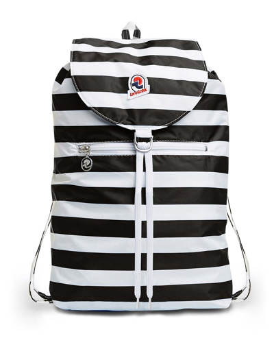 INVICTA Backpacks. medium, techno fabric, brand logo, stripes, drawstring closure, magnetic fastening, external pocket with zip, lifestyle, daytime, backpack with flap. 100% Polyester