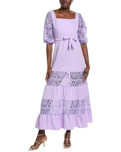 Introducing the 'IPPONELLI Midi Dress' for women, a stunning addition to your wardrobe. This lavender dress features lace sleeves and inserts, a tie sash at the waist, and a flattering silhouette that measures approximately 54 inches from shoulder to hem. The center back zipper ensures easy on and off, while the 100% polyester fabric is both luxurious and easy to care for. Hand wash only. Imported. The model is 5'10' and is wearing a size small, with measurements that may vary slightly by size. Elevate your style with this elegant dress from IPPONELLI.