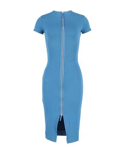 Bodycon Front-zip Dress In Blue Bamboo Viscose