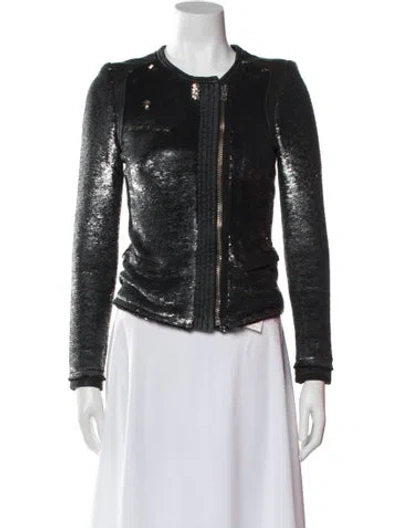 Iro Biker Jacket Black Leather & Sequin Accents Collarless Zip Pockets & Zip Closure Fit: Jackets by Iro typically fit true to size. | Iro Biker Jacket in Black, Women's US6, FR38 | M