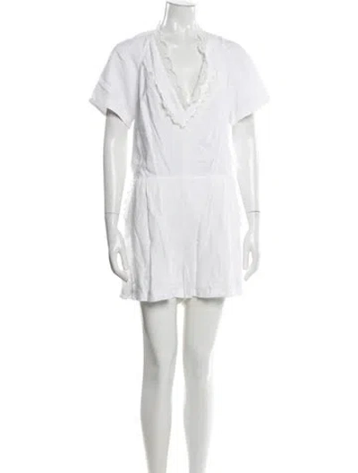 Iro Romper White Short Sleeve with Crew Neck Fit: Jumpsuits and Rompers by Iro typically fit true to size. | Iro Crew Neck Romper in White, Women's US6, FR38 | M