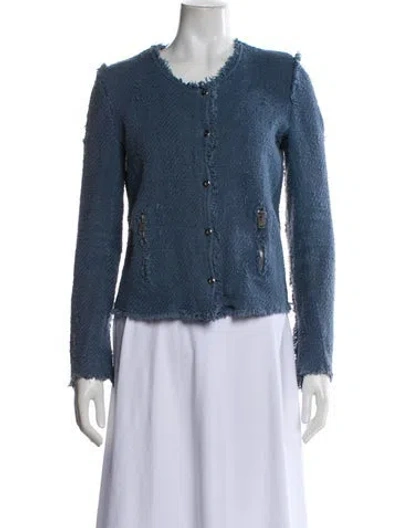 Iro Evening Jacket Blue Raw-Edge Trim & Collarless Zip Pockets & Zip Closure Designer Fit: Designed for a slim fit, those with a curvy figure may wish to take one size up. | Iro Evening Jacket in Blue, Women's US6, FR38 | M