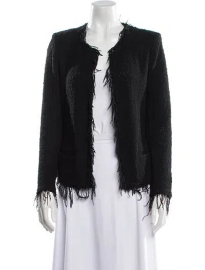 Iro Evening Jacket Blue Fringe & Raw-Edge Accents Collarless Slit Pockets & Open Front Designer Fit: Designed for a slim fit, those with a curvy figure may wish to take one size up. | Iro Evening Jacket in Blue, Women's US6, FR38 | M