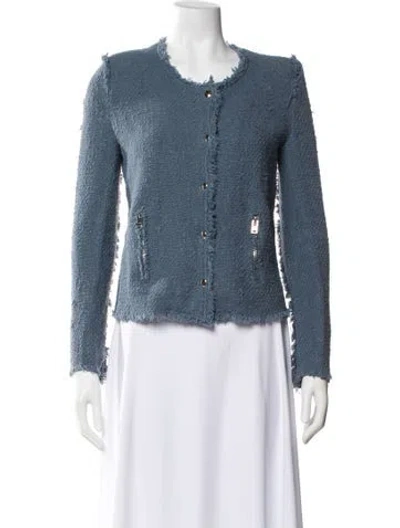 Iro Evening Jacket Blue Raw-Edge & Distressed Accents Collarless Zip Pockets & Zip Closure Designer Fit: Designed for a slim fit, those with a curvy figure may wish to take one size up. | Iro Evening Jacket in Blue, Women's US6, FR38 | M