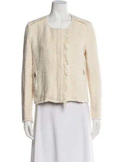 Iro Evening Jacket Neutrals Fringe Trim Accent & Collarless Zip Pockets & Zip Closure Designer Fit: Designed for a slim fit, those with a curvy figure may wish to take one size up. | Iro Evening Jacket in Neutrals, Women's US10, FR42 | L