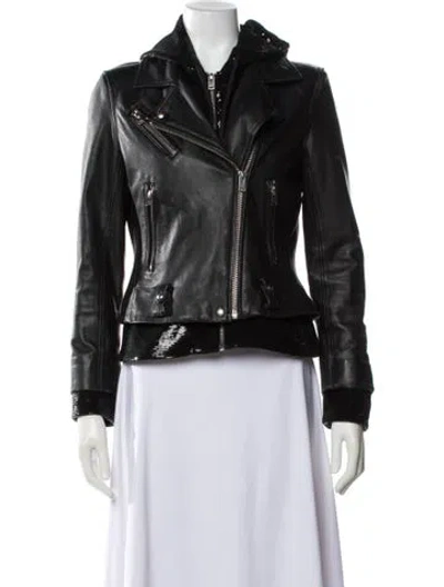 Iro Leather Biker Jacket Black With Hood Sequin Embellishments & Pointed Collar Zip Pockets & Zip Closure Designer Fit: Designed for a slim fit, those with a curvy figure may wish to take one size up. | Iro Leather Biker Jacket in Black, Women's US8, FR40 | M