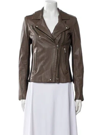 Iro Leather Biker Jacket Black & Brown Pointed Collar Zip Pockets & Zip Closure Designer Fit: Designed for a slim fit, those with a curvy figure may wish to take one size up. | Iro Leather Biker Jacket in Black/Brown, Women's US6, FR38 | M