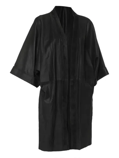 black lambskin open front wide sleeves straight hem Condition: GOOD. This previously owned and used item is in good condition with minimal signs of use. This may include fading of material or plating and scratches.