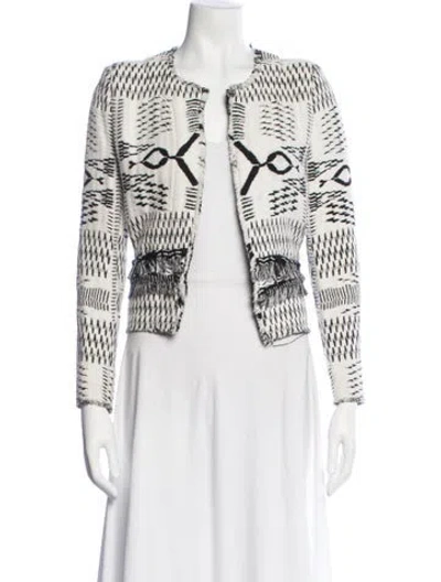 Iro Jacket Black & White Printed Raw-Edge Trim & Collarless Slit Pockets & Open Front Designer Fit: Designed for a slim fit, those with a curvy figure may wish to take one size up. | Iro Printed Jacket in Black/White, Women's US6, FR38 | M