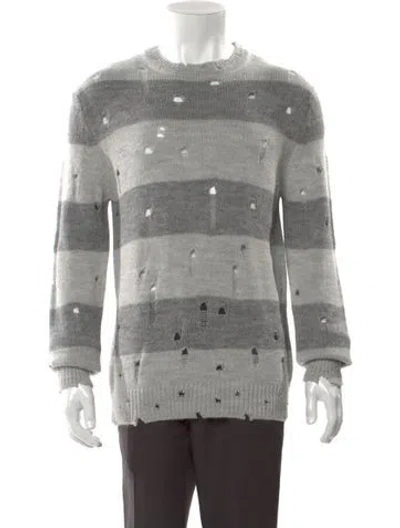 Iro Pullover Grey Striped Distressed Accents Long Sleeve with Crew Neck Fit: Sweaters by Iro typically fit true to size. | Iro Striped Crew Neck Pullover in Grey, Men's L