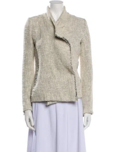 Iro Blazer Neutrals Tweed Pattern Raw-Edge Trim & Stand Collar Zip Pockets & Button Closure Fit: Jackets by Iro typically fit true to size. | Iro Tweed Pattern Blazer in Neutrals, Women's US6, FR38 | M