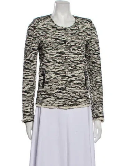 Iro Evening Jacket Black Tweed Pattern Raw-Edge & Embroidered Accents Collarless Zip Pockets & Zip Closure Fit: Jackets by Iro typically fit true to size. | Iro Tweed Pattern Evening Jacket in Black, Women's US4, FR36 | S