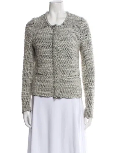 Iro Evening Jacket Grey Tweed Pattern Raw-Edge Trim & Collarless Slit Pockets & Snap Closure Fit: Jackets by Iro typically fit true to size. | Iro Tweed Pattern Evening Jacket in Grey, Women's US4, FR36 | S