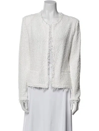 Iro Evening Jacket White Tweed Pattern Fringe & Raw-Edge Accents Collarless Slit Pockets & Open Front Designer Fit: Designed for a slim fit, those with a curvy figure may wish to take one size up. | Iro Tweed Pattern Evening Jacket in White, Women's US12, FR44 | XL