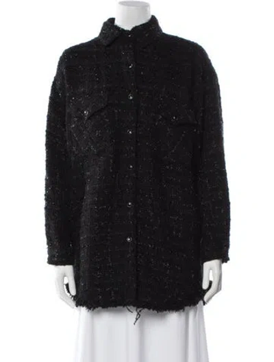 Iro Jacket Black Tweed Pattern Distressed Accents & Pointed Collar Flap Pockets & Button Closure Fit: Jackets by Iro typically fit true to size. | Iro Tweed Pattern Jacket in Black, Women's US2, FR34 | XS