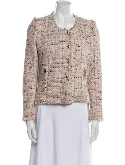 Iro Jacket Pink Tweed Pattern Raw-Edge & Sequin Accents Collarless Zip Pockets & Zip Closure Designer Fit: Designed for a slim fit, those with a curvy figure may wish to take one size up. | Iro Tweed Pattern Jacket in Pink, Women's US8, FR40 | M