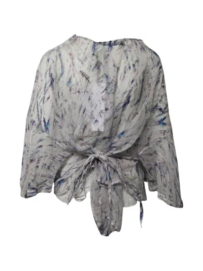 white V-neck pattern long sleeves tie detail silk Condition: UNWORN, WITH TAGS. This piece is previously owned but remains unworn and in its original condition. Comes complete with its original tags attached.