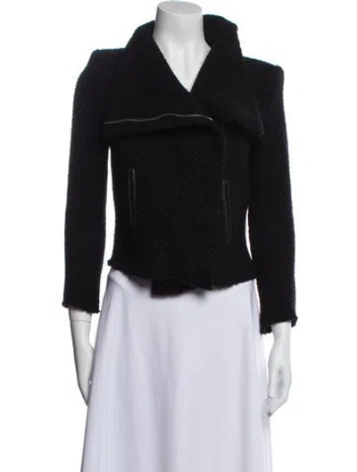 Iro Wool Biker Jacket Blue Fur Trim & Shawl Collar Zip Pockets & Zip Closure Fit: Jackets by Iro typically fit true to size. | Iro Wool Biker Jacket in Blue, Women's XS