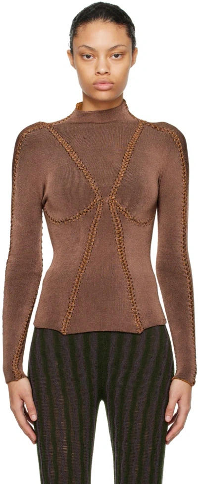 Handcrafted knit stretch rayon turtleneck. · Whipstitching throughout · Paneled construction Wholesale exclusivity at SSENSE. Supplier color: Soil