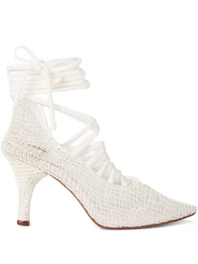Technical fabrication in a crochet finish Pointed toe Self-tie fastening ankle strap Stiletto heel