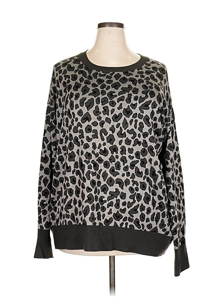Isaac Mizrahi New York Pullover Sweater, Size: 2X-Large. Item Details: Black, Animal Print Pattern, Crew Neck, Long Sleeve, Women's Tops
