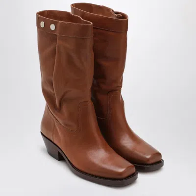 Havana-coloured leather biker boot from Isabel Marant featuring a pleated upper, a press stud fastening, a square toe, a laminated heel and a leather sole. Size Type: ITMaterial: LeatherSKU: 24ABO0119FAB3A23S/PISAMA50HA500 Our Products Are 100% Genuine. In All Cases We Stand By The Authenticity Of Every Product Sold On Our Site.