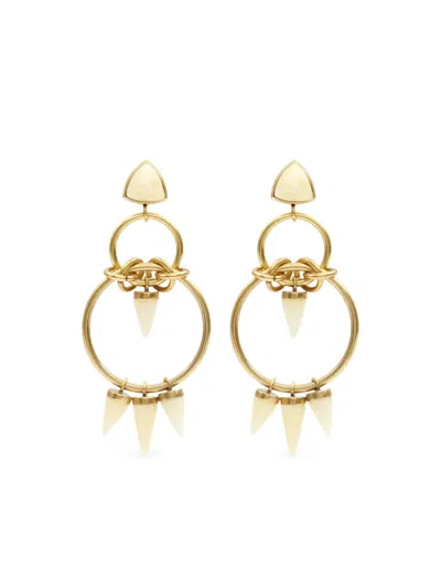 Hoop and pendant earrings Colorful resin base and pendants Gold-finish brass rings Height: 9 cm / 3.5 in. Style: BL0224FAC2B11BECLS BE WITH YOU Color: ecru-light brass