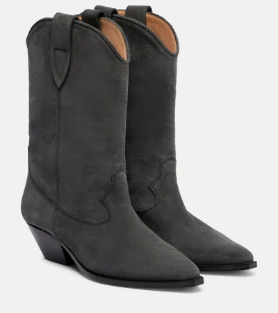 Elevate your western-inspired style with the Isabel Marant Duerto Suede Cowboy Boot. These stunning grey suede booties feature a pointy-toe design, a 2 inch heel, and a smooth leather sole. The lightly padded leather insole ensures all-day comfort, while the 9.5 inch shaft and 13 inch boot circumference provide a perfect fit. Inspired by real life, Isabel Marant's designs are known for their effortless chic and Parisian flair. Please note that size selections are in European sizing, so be sure to reference the size chart for US conversions. All measurements are approximate and were taken from a size 37, so slight variations may occur.Rest assured that all our products are 100% genuine, sourced from trusted independent suppliers. Shop with confidence knowing that every Isabel Marant product sold on our site is authentic and of the highest quality. Elevate your shoe collection with the Isabel Marant Duerto Suede Cowboy Boot today.