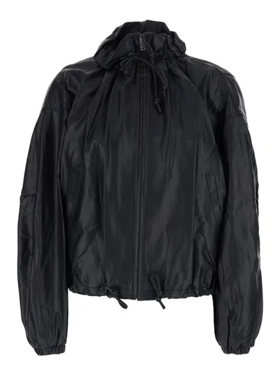 JacketBlackHigh collar with drawstringLong sleevesDrop shouldersZip closureTwo side pocketsElastic waist with drawstringEco leatherLoose fit SKU: VE0604FAD1B03E01BK Our Products Are 100% Genuine. In All Cases We Stand By The Authenticity Of Every Product Sold On Our Site.