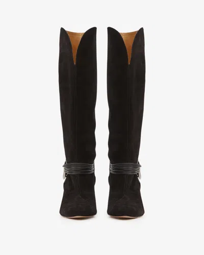 Tall, high-heeled boots in suede calfskin leather Leather uppers with round yokes Smooth leather straps Silver-finish metal jewel with an "Isabel Marant" engraving Covered high heels Soft leather insoles and outsoles Soft leather lining Heel height: 7.5 cm / 3 in.