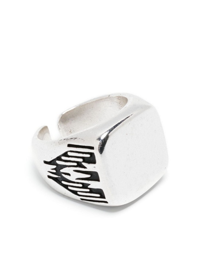 square-face ring from ISABEL MARANT featuring silver-tone, polished finish, square face, engraved logo, open back, adjustable fit and brass.
