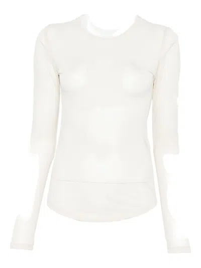 Ecru-colored top in viscose and silk blend with a tight and semi-transparent fit. 80% viscose, 20% silk MADE IN PORTUGAL