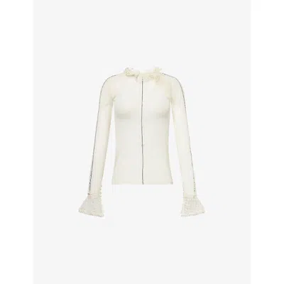 Womens Ecru Sarah Long-sleeve Mesh-knit Top In Neutral