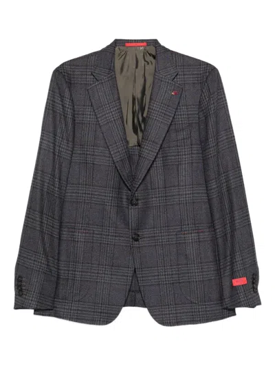 ISAIA Checked-pattern Wool-silk Blend Blazer In Gray