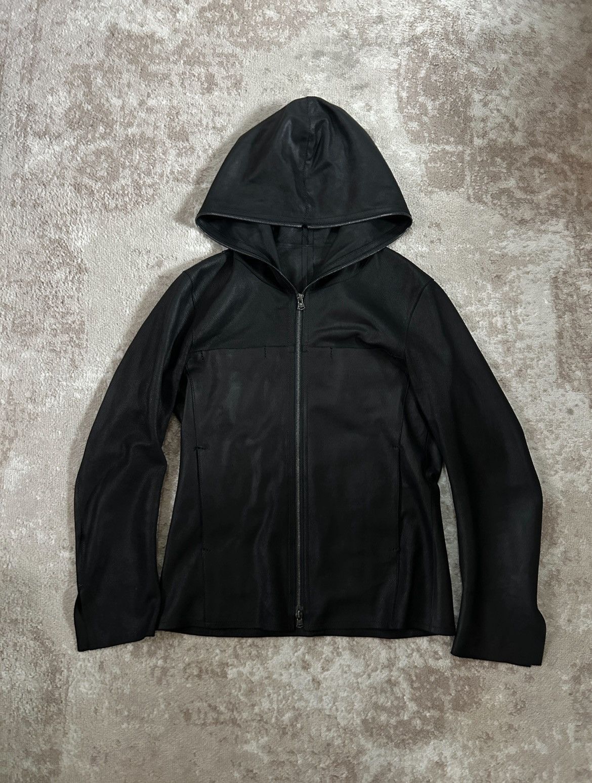 Pre-owned Isamu Katayam Backlash Goat Leather Hooded Jacket In Black