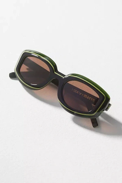 Hand-polished acetate frame Polarized lenses Anti-reflective, scratch-resistant coating Injected wire core temples for added flexibility Five-barrel industrial hinges 100% UV protection Wipe clean Imported Curved Rectangular Colorblock Polarized Sunglasses by I-SEA in Green, Women's, Tin/Acetate at Anthropologie