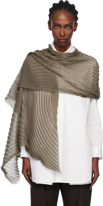 ISSEY MIYAKE Khaki Silk Wool Pleats Stole Scarf In Gray