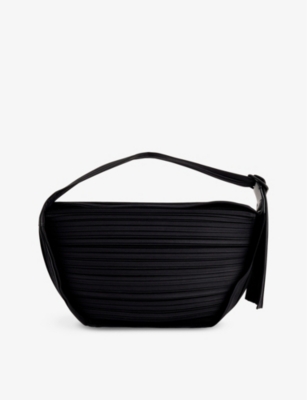 ISSEY MIYAKE Pleats Please Womens Black Half Moon Pleated Woven Shoulder Bag